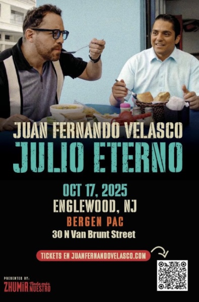 Juan Fernando Velasco rinde homenaje a uno de los cantantes más queridos del mundo latino, el ecuatoriano Julio Jaramillo (1935–1978), con el tour JULIO ETERNO, en el que, gracias al uso brillante de la inteligencia artificial, una reconstrucción minuciosa de la voz de Jaramillo y una espectacular escenografía se puede ver a Juan Fernando cantar a dúo con el “Ruiseñor de América” en un espectáculo realista con muchas emociones. El tour será en veinte ciudades y en New Jersey, Julio Eterno estará presentándose el 15 de octubre en el State Theatre (New Brunswick) y el 17 de octubre en Bergen PAC (Englewood).