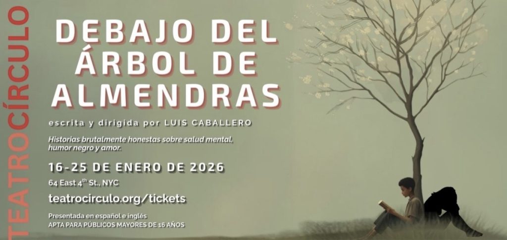 ‘Debajo del árbol de almendras’, en su estreno mundial, se presentará en 8 funciones, del 16 al 25 de enero de 2026 en Teatro Círculo ubicado en 64 East 4th Street en Manhattan. Las funciones serán viernes y sábados a las 7PM, con matinés los sábados y domingos a las 2 PM, presentadas en español e inglés. Gracias a Howard Gilman Foundation y The Mosaic Network and Fund Teatro Círculo tiene disponibles boletos subvencionados a $10 para las funciones de los sábados solamente. Apta para públicos mayores de 16 años.